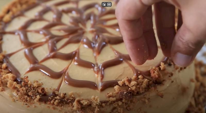 8. Coloque los trozos de pastel sobrantes horneados en un procesador de alimentos y procese en migas pequeñas. Decora el bizcocho con las migas.