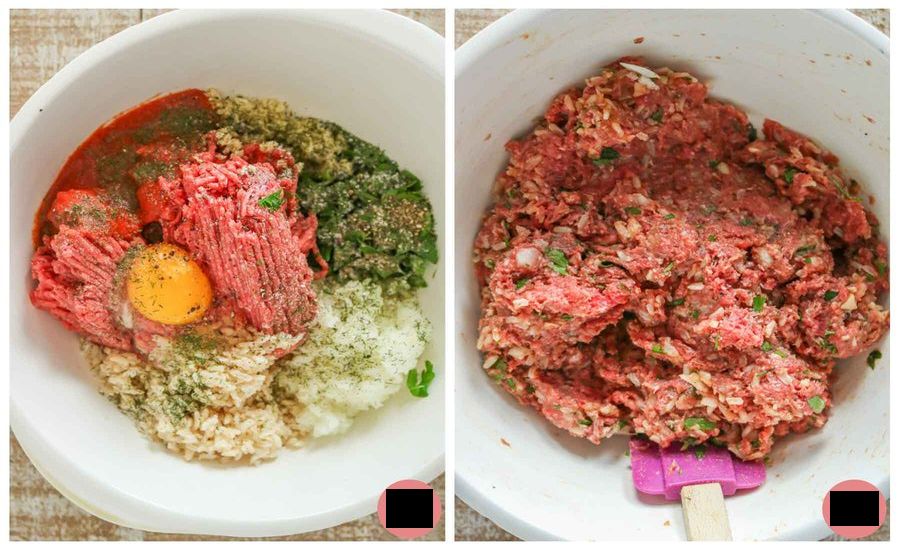 -Preparar la mezcla de carne: En un tazón grande, combina la carne molida con la salsa inglesa, el huevo, el arroz cocido, la cebolla, el perejil, el ajo, la sal, la pimienta, el eneldo, el polvo de cebolla y las hojuelas de chile rojo (si las usas). Agrega ½ taza de salsa de tomate. Mezcla bien hasta que todos los ingredientes estén bien integrados.