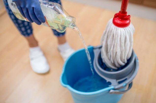Empecemos por los suelos de madera y parqué, que pueden añadir un toque de encanto y calidez al hogar. Aunque este material es hermoso a la vista, también es muy delicado y, por lo tanto, requiere cuidados. Te alegrará saber que solo necesitas vinagre blanco para pulirlo a fondo. Así que vierte 1/4 de vinagre en un cubo de agua y sumerge un paño de microfibra en la mezcla.