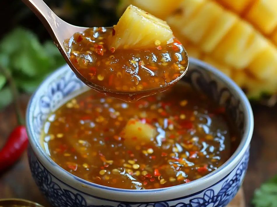 4️⃣ Mezcla todo: Agrega la mezcla de chiles y ajo a la cacerola con la piña. Cocina por 5 minutos más, removiendo de vez en cuando para que los sabores se integren bien. 🥧🌶️🍍