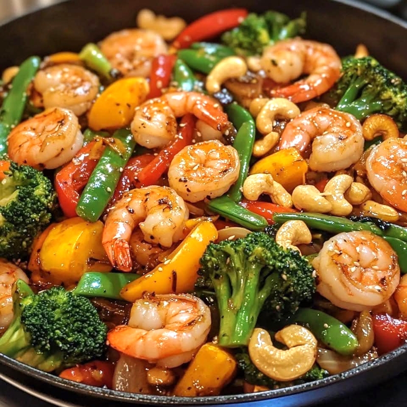 Este salteado combina la suavidad de los camarones con el toque crujiente de las verduras y los anacardos. La mezcla de ajo, jengibre, salsa de soja y miel aporta un delicioso contraste entre dulce y salado, haciendo que cada bocado sea una explosion de sabor.