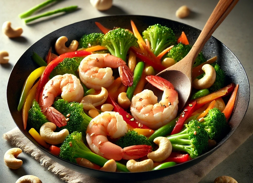 Si buscas una receta fácil, rápida y llena de sabor, este salteado de camarones con ajo, verduras y anacardos es la elección perfecta. Con ingredientes frescos y un equilibrio ideal entre lo crujiente y lo jugoso, este plato se prepara en solo 20 minutos y es ideal para una comida ligera y nutritiva.