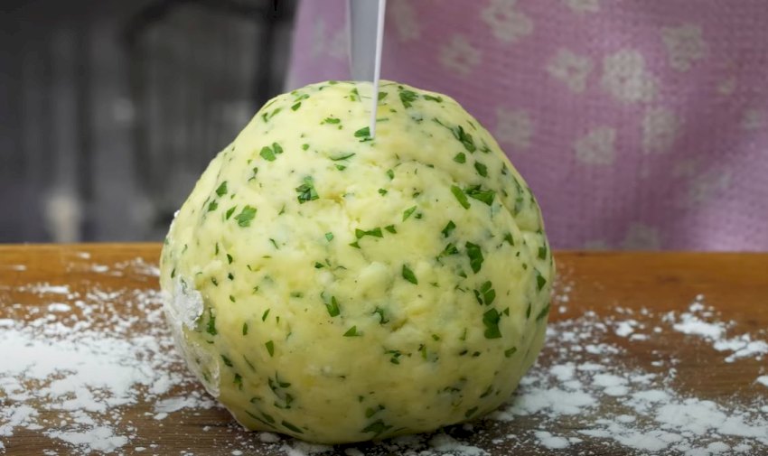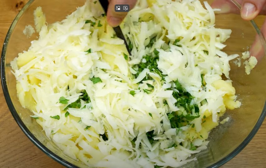 -Agregue el puré de yuca o las papas cocidas y mezcle bien con todos los demás ingredientes.
