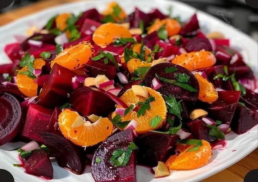 La mezcla de remolacha con naranja, especias y frutos secos le da un toque exótico que encanta desde el primer bocado. Prepárala con antelación para que los sabores se intensifiquen y disfruta de una ensalada nutritiva, refrescante y muy original. 🥄