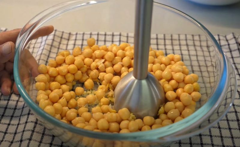 -Preparar los Garbanzos: Escurre los garbanzos cocidos y enjuágalos bien. Luego, tritúralos ligeramente con un tenedor o una licuadora, dejando algunos trozos para una mejor textura.