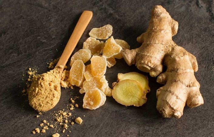 El jengibre contiene antioxidantes y también ayuda a bajar los triglicéridos. Se puede hacer un té de jengibre rallando 2 cucharadas de raíz de jengibre, se coloca en agua caliente, y se deja reposar unos minutos y se toma. Otra opción es agregarle jengibre rallado a las ensaladas.