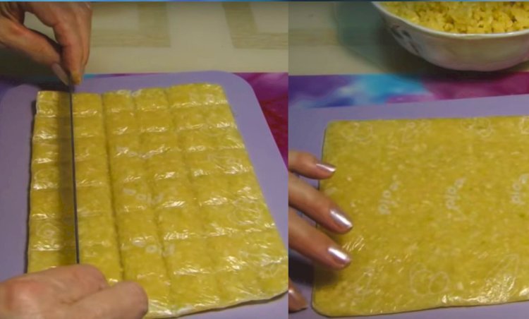 Utiliza una regla para dividir la capa de ajo en pequeños cubos. Una vez segmentado, coloca la bolsa en el congelador.